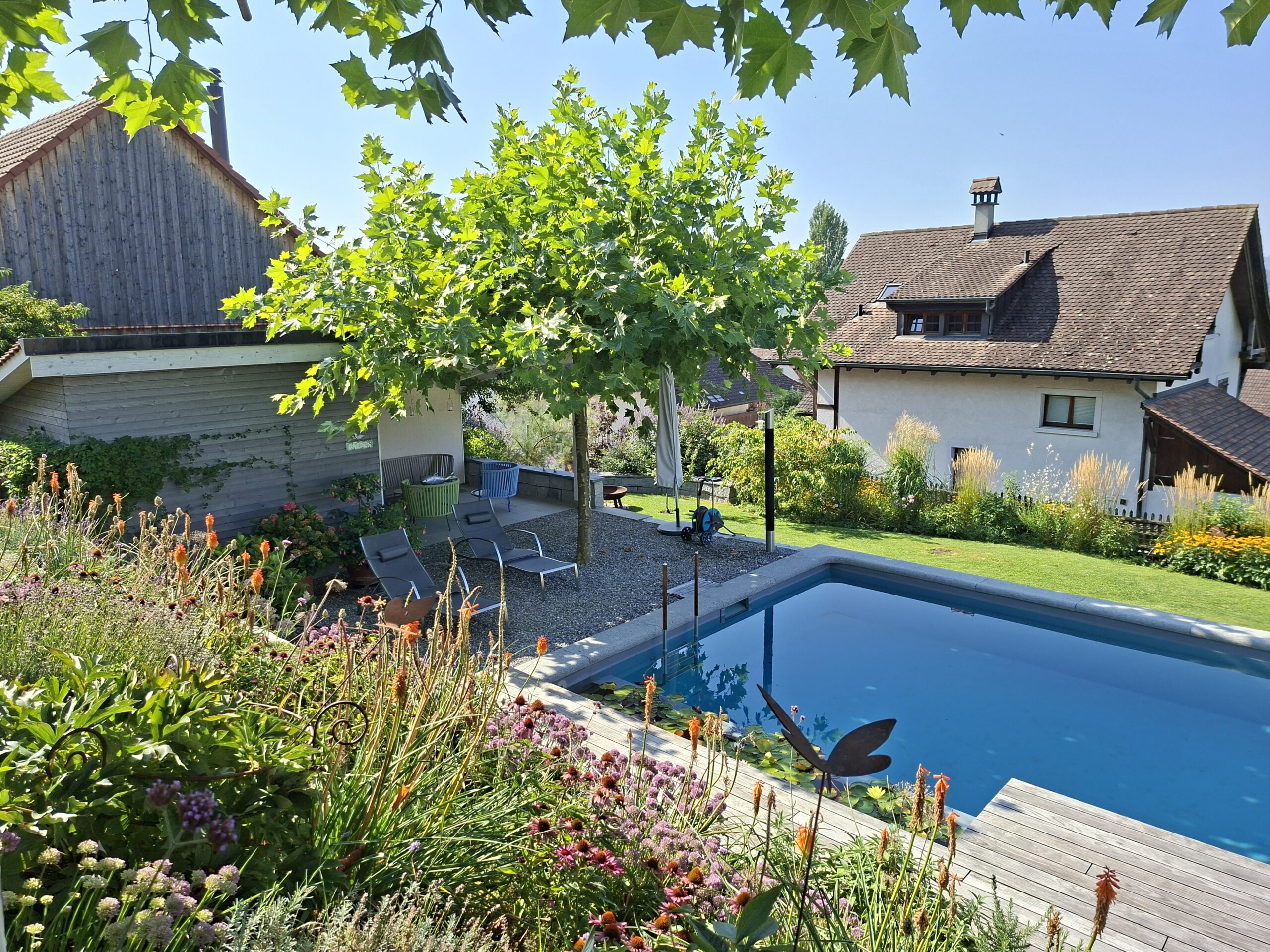 Aufenthaltsqualität neben dem Naturpool.